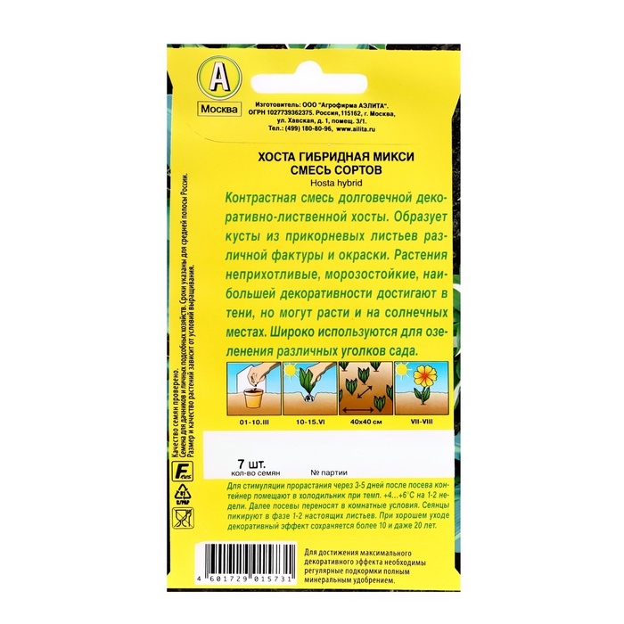 Семена цветов Хоста "Микси" смесь сортов, ц/п, 7 шт