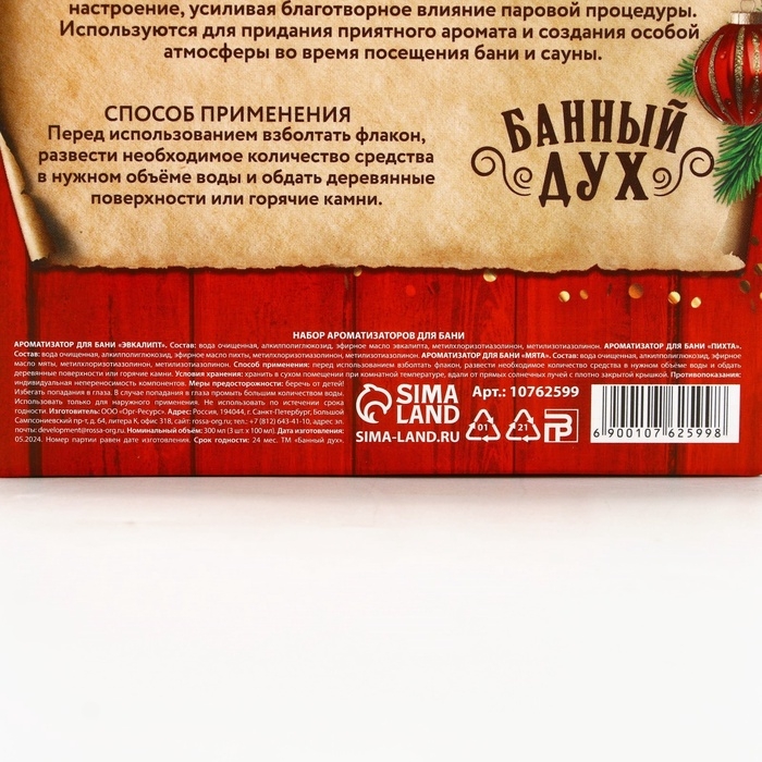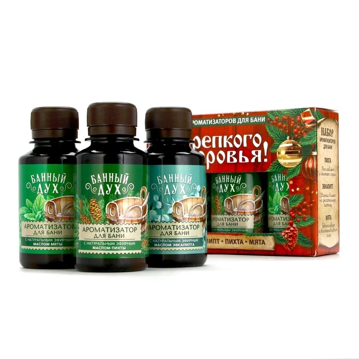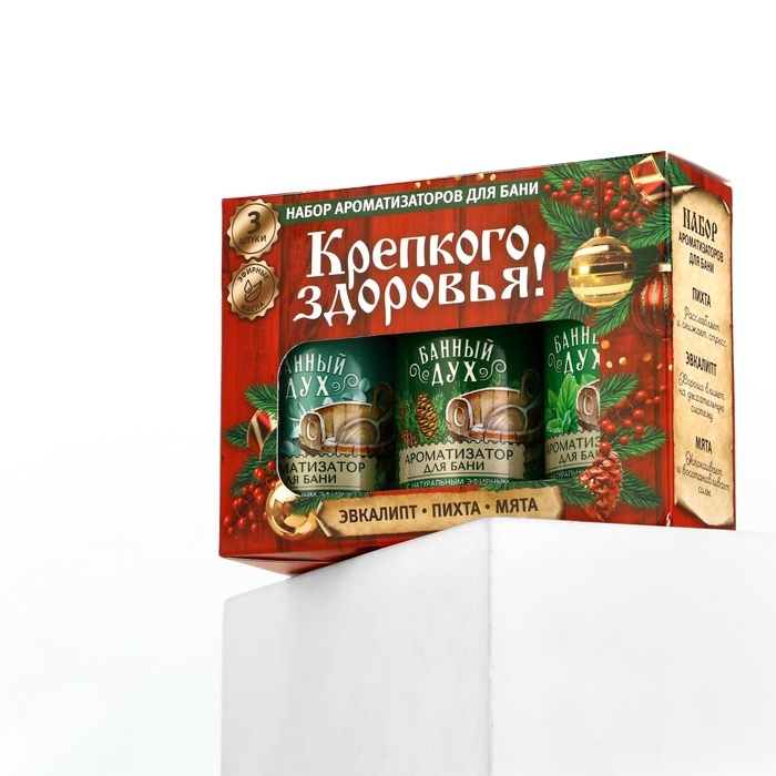 Подарочный набор БАННЫЙ ДУХ «Крепкого здоровья», ароматизатор для бани, 3х100 мл, Новый Год