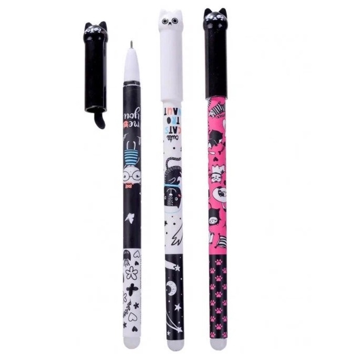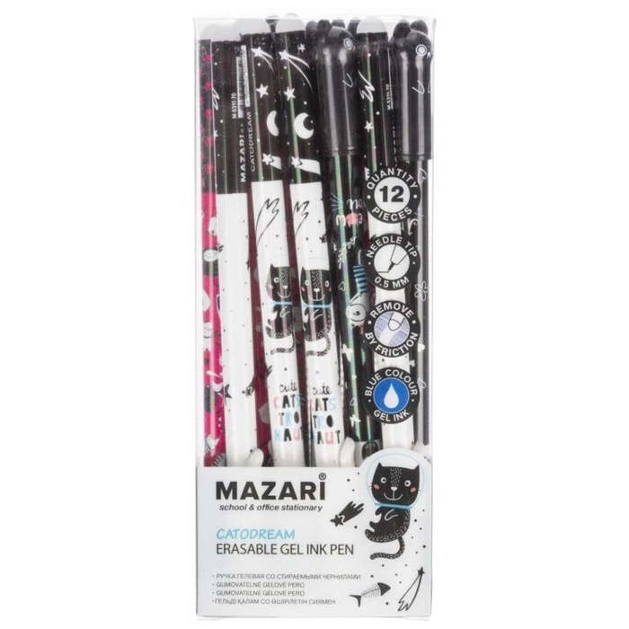 Ручка гелевая синяя со стираемыми чернилами Mazari "CATODREAM" + 9 стержней в комплекте, игольчатый пишущий узел 0,5 мм, термочувствительные чернила