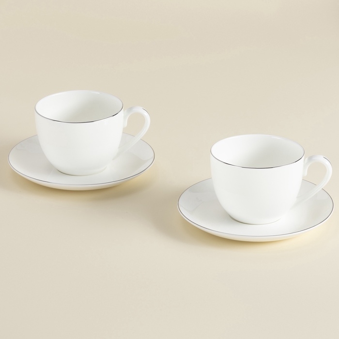 Чайные пары SL Home «Каскарон», 240 мл, набор 2 шт, костяной фарфор, белые
