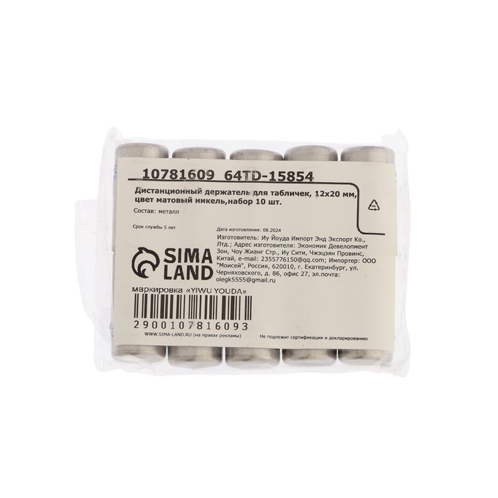 Дистанционный держатель для табличек, 12х20 мм, цвет матовый никель,набор 10 шт.