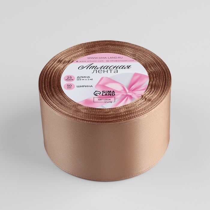 Лента атласная, 50 мм × 23 ± 1 м, цвет кофе с молоком