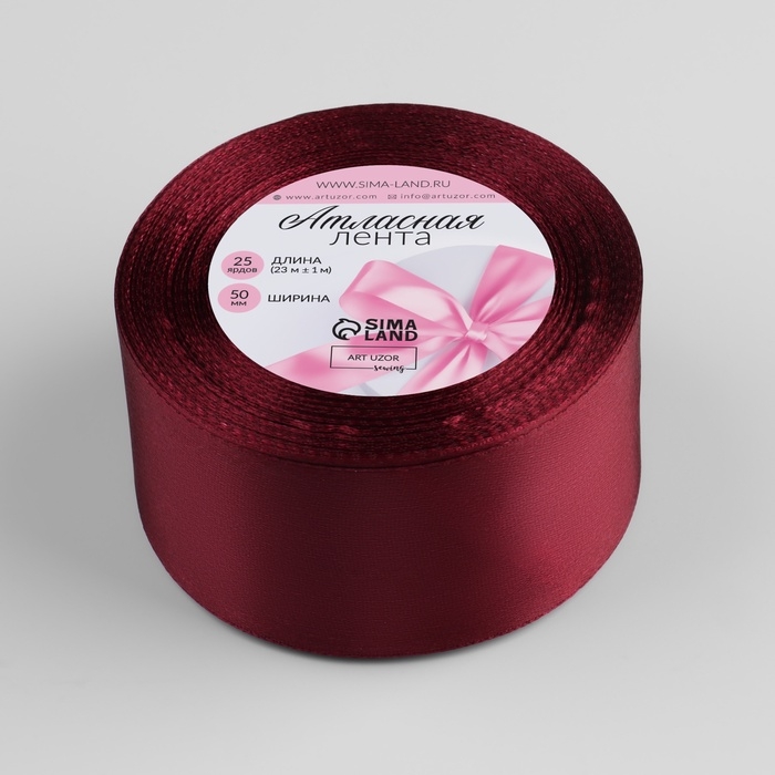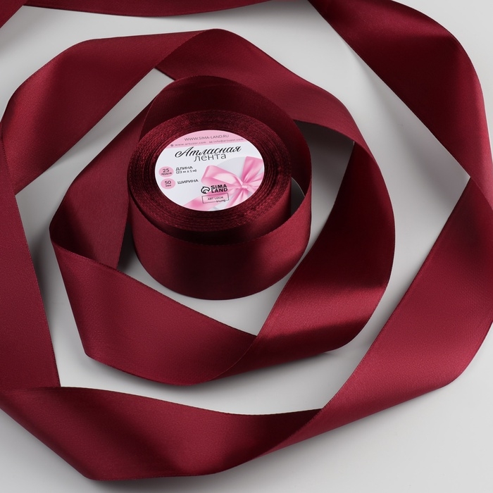 Лента атласная, 50 мм × 23 ± 1 м, цвет бургунди