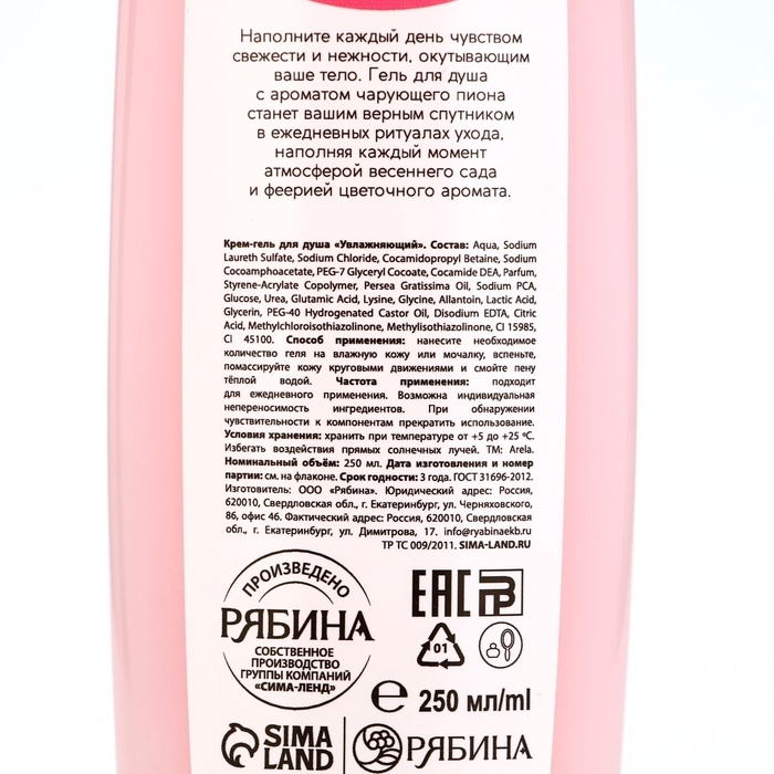 Крем-гель для душа ARELA, 250 мл, аромат чарующего пиона