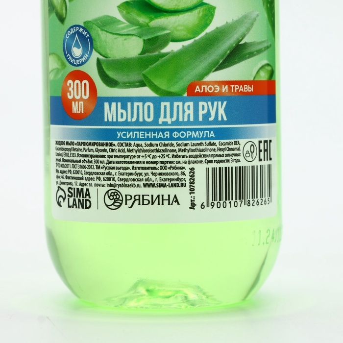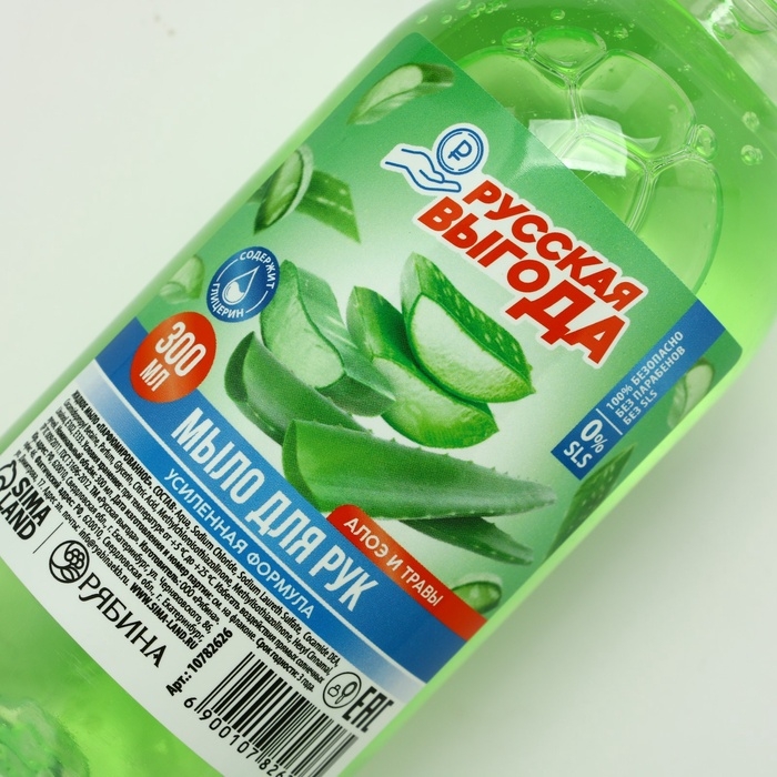 Жидкое мыло для рук РУССКАЯ ВЫГОДА, 300 мл, аромат алоэ и трав