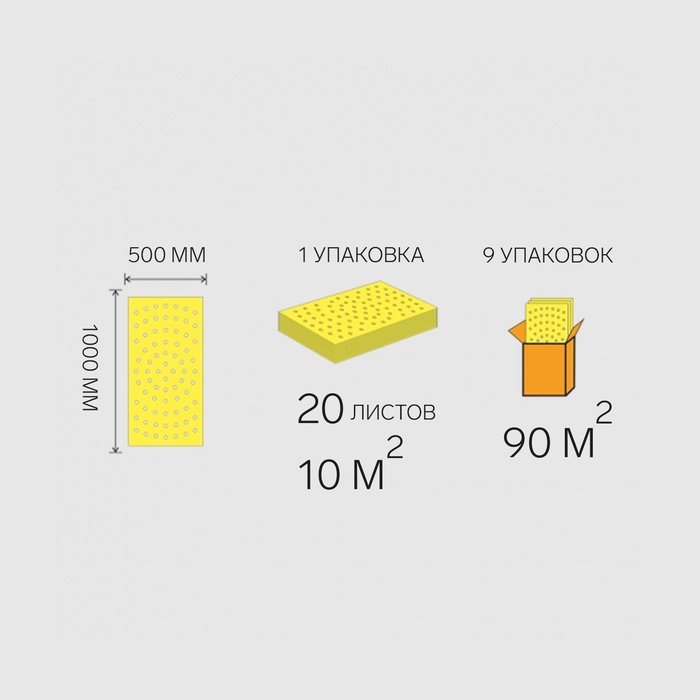 Листовая подложка для теплых полов, желтый толщина 2мм, 10м2