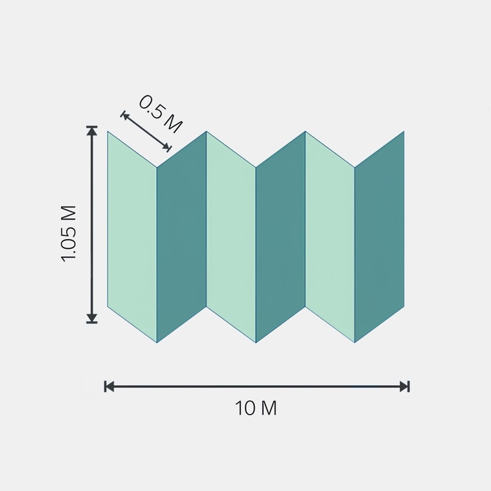 - Размеры: 1050 × 10000 × 1.5 мм (в разложенном виде); 1050 × 500 мм (размер в упаковке)