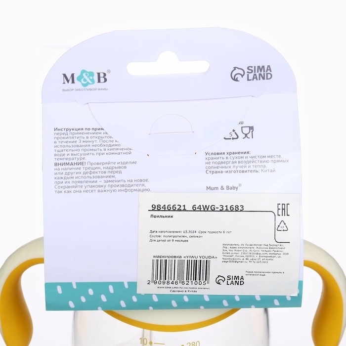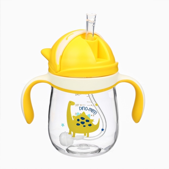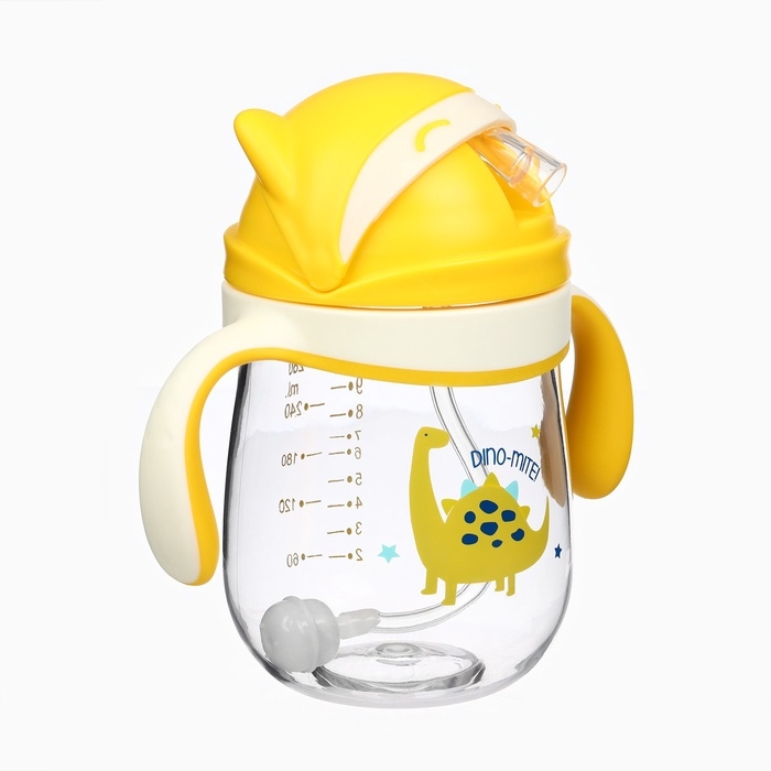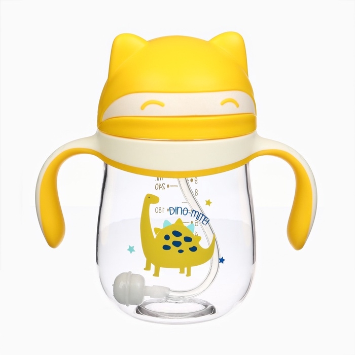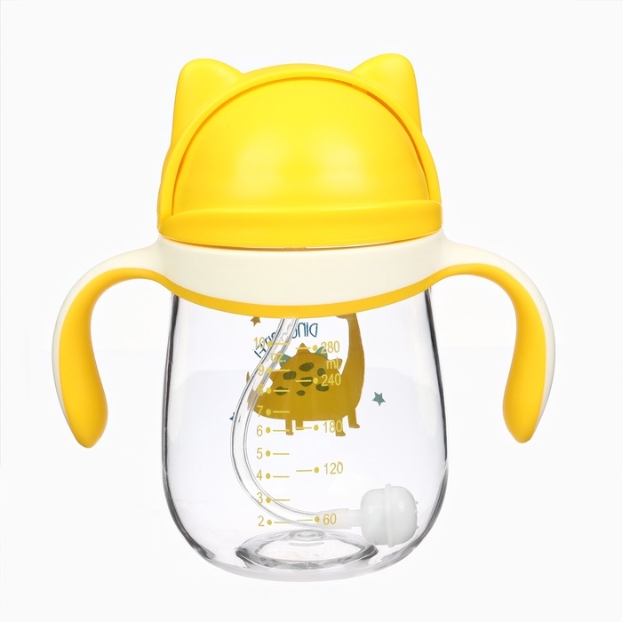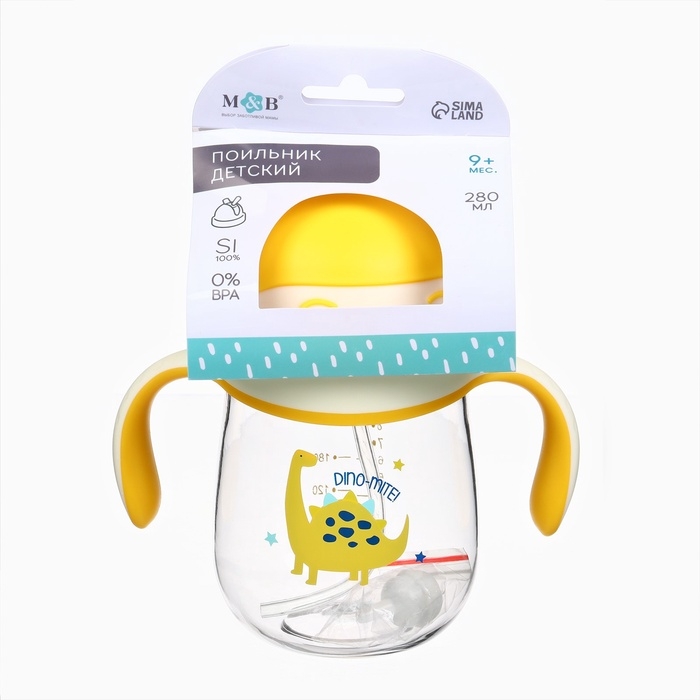 Поильник детский M&B «Котик» с трубочкой, от 9 мес., 280 мл., цвет молочно-желтый