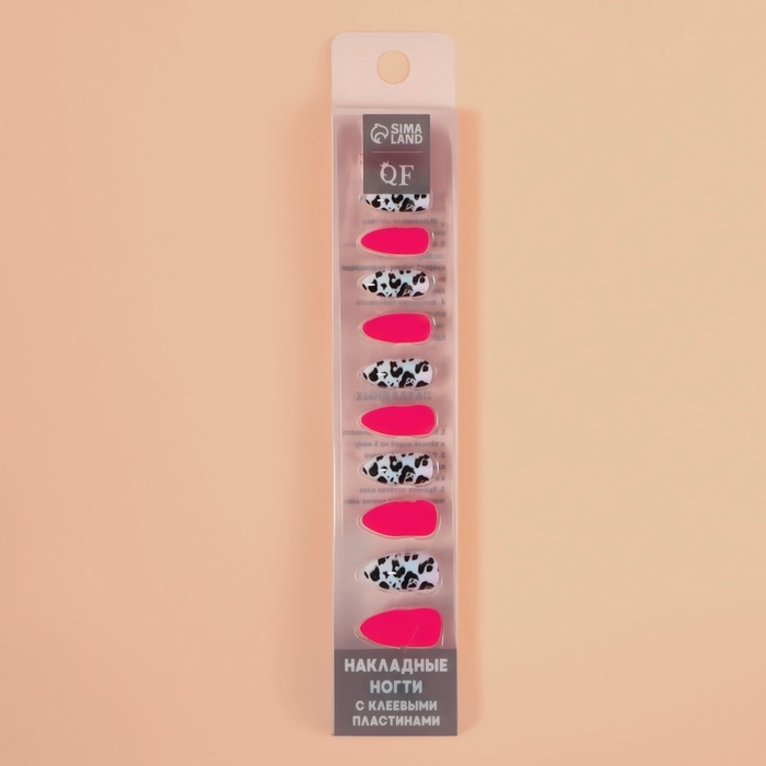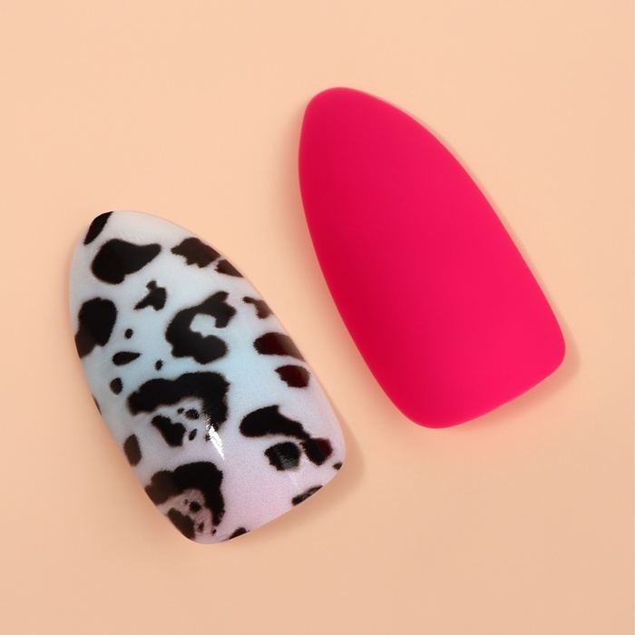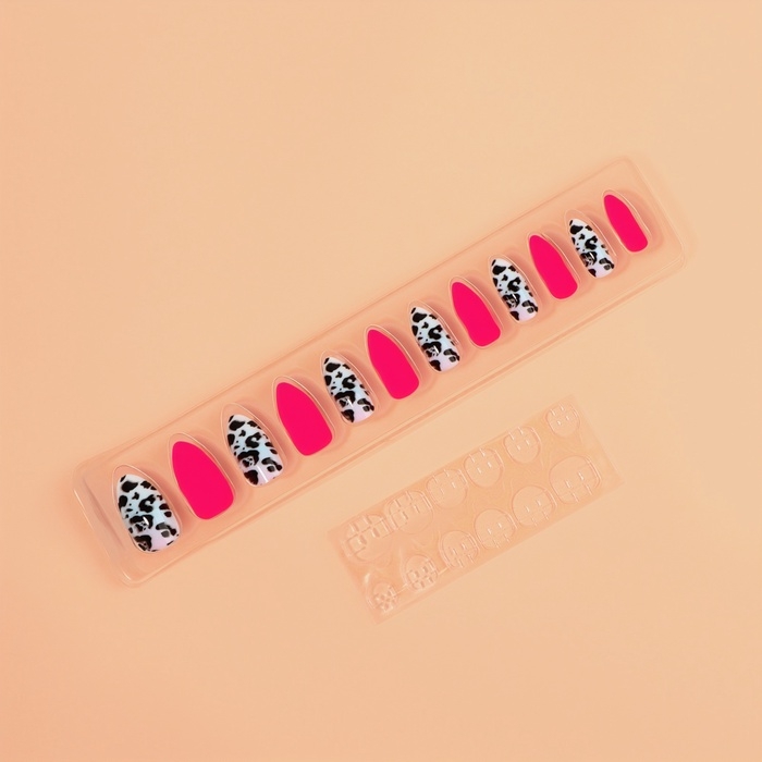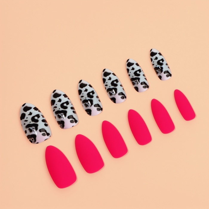 Накладные ногти «Лео», 12 шт, с клеевыми пластинами, форма миндаль, чёрные, розовые