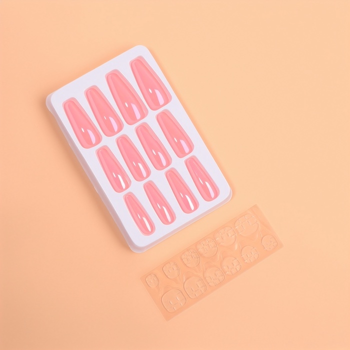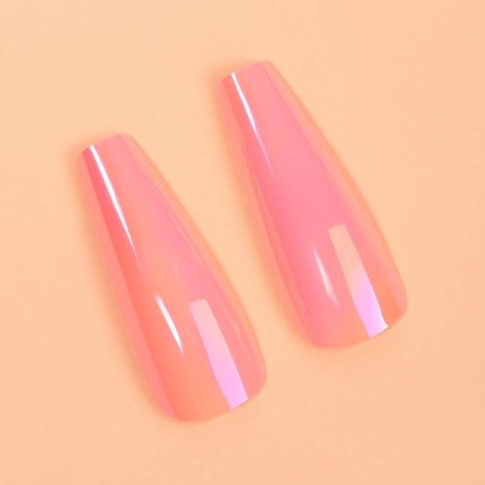 Накладные ногти «Перламутр», 12 шт, с клеевыми пластинами, форма балерина, розовые