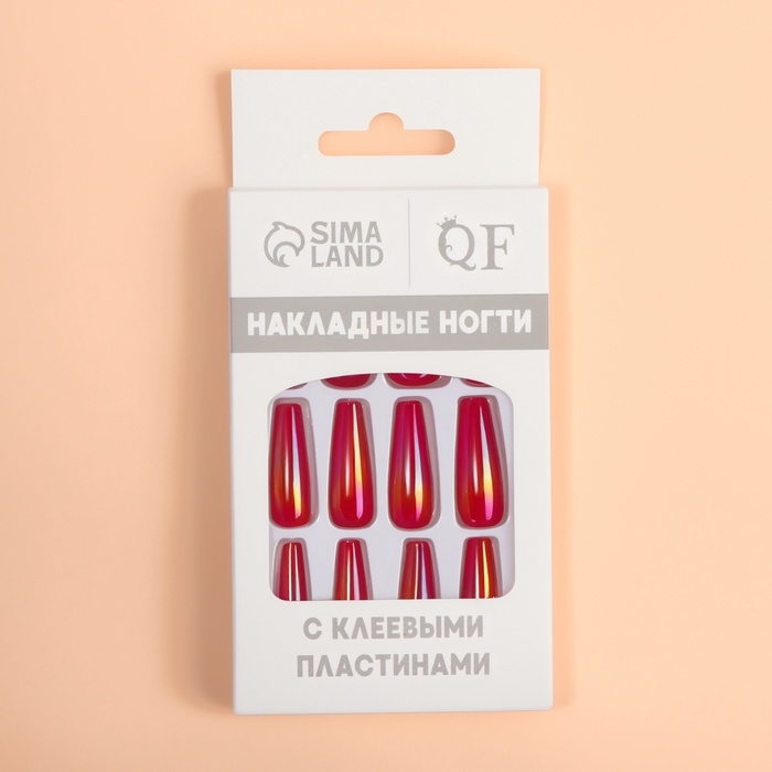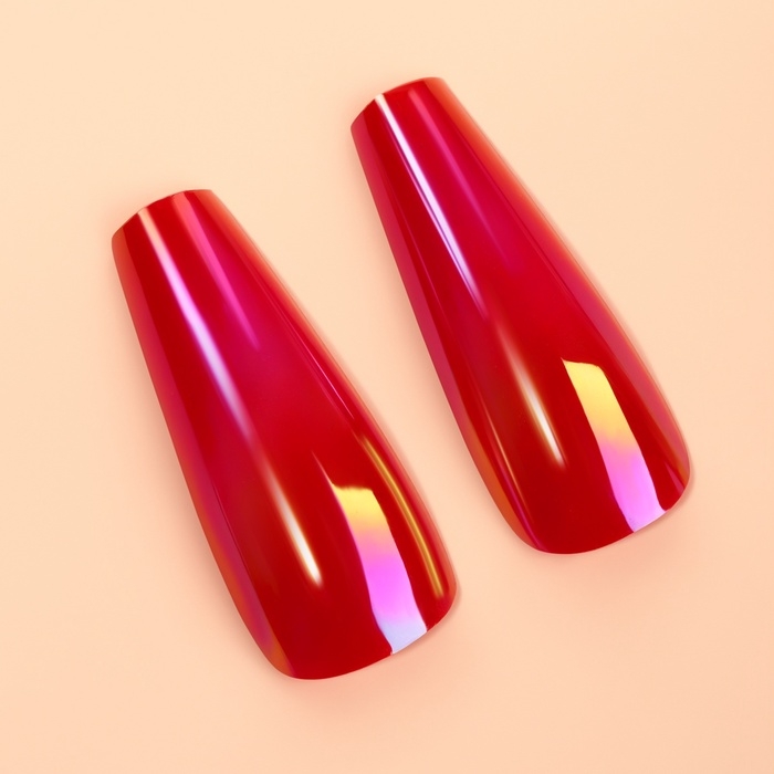 Накладные ногти «Перламутр», 12 шт, с клеевыми пластинами, форма балерина, красные