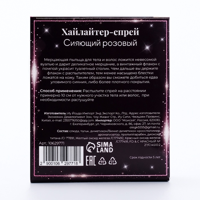Создайте свой собственный уникальный образ, добавив этот сияющий глиттер-спрей, который подчеркнет вашу индивидуальность и придаст вам загадочное сияние.