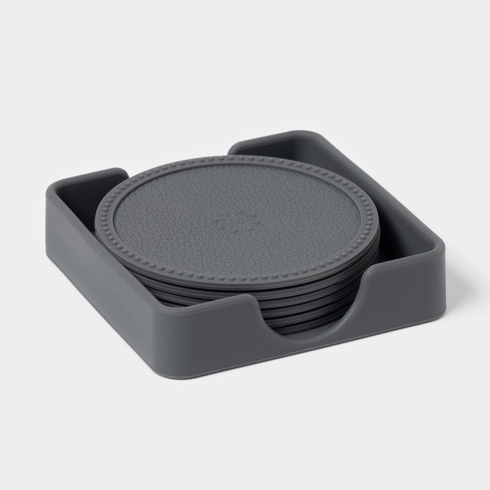 Набор подставок под горячее, под кружку, силикон, 6 шт, d=8 см, серый