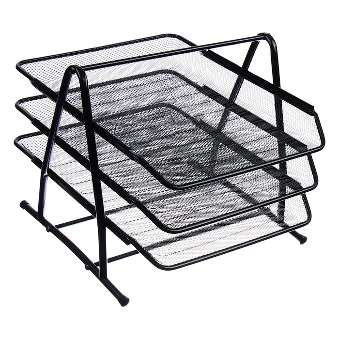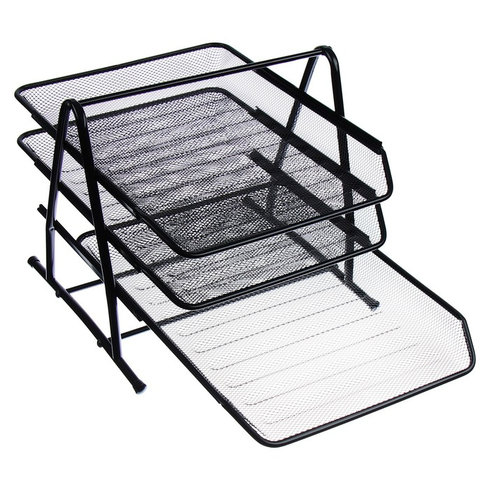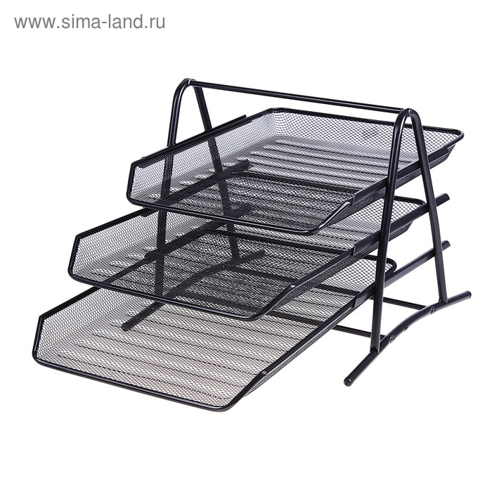 Лоток для бумаг горизонтальный, 3 отделения, чёрная сетка
