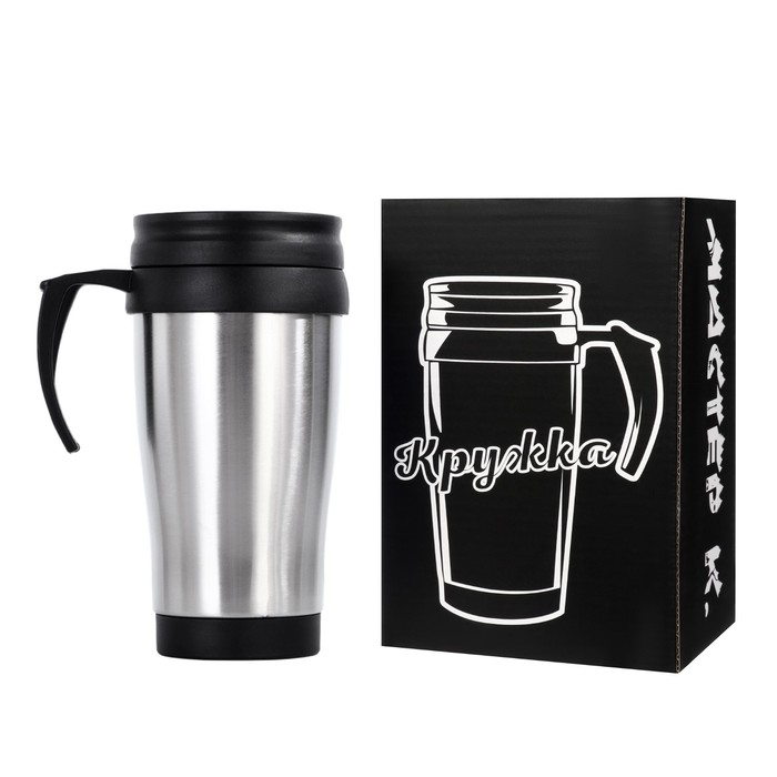 Термокружка Мастер К, 350 мл, Classic «Барна», 13×18 см, сохраняет тепло 2 ч, нержавеющая сталь, чёрная