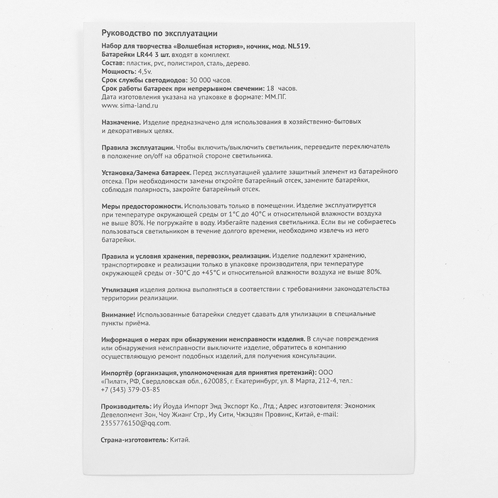Страна изготовитель