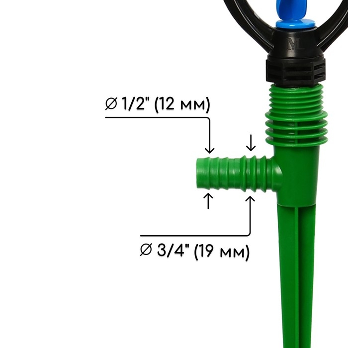 Распылитель 4−лепестковый, штуцер под шланги 1/2" (12 мм) − 3/4" (19 мм), пика, ABS-пластик, Greengo