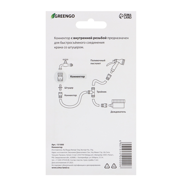 Коннектор предназначен для соединения шланга с пистолетами-разбрызгивателями, кранами, для соединения труб и шлангов между собой. Также может служить в качестве переходника с одного диаметра изделия на другой.