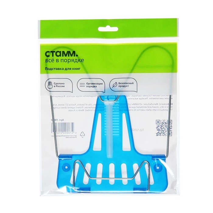 - Подходит для книг разных форматов. Благодаря наличию фиксатора не складывается под тяжестью книги.