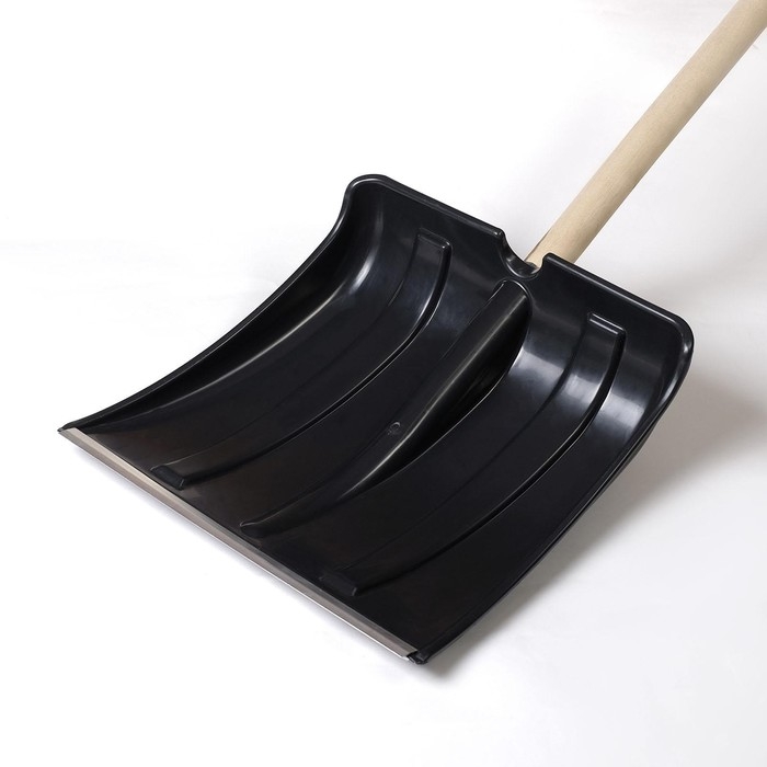 Лопата для уборки снега, пластиковый ковш 380 × 365 мм, металлическая планка, деревянный черенок, «Снеговик»