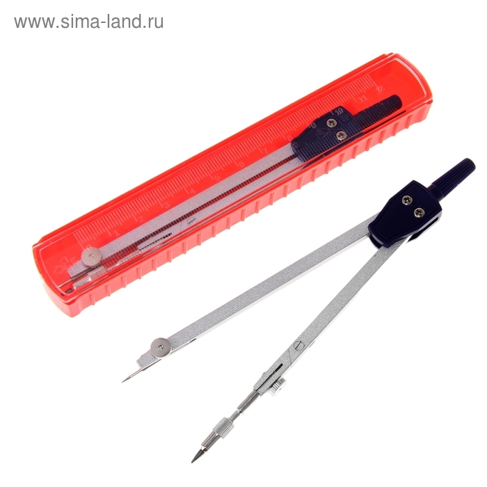 Циркуль металлический в пластиковом пенале, крышка-линейка, большой
