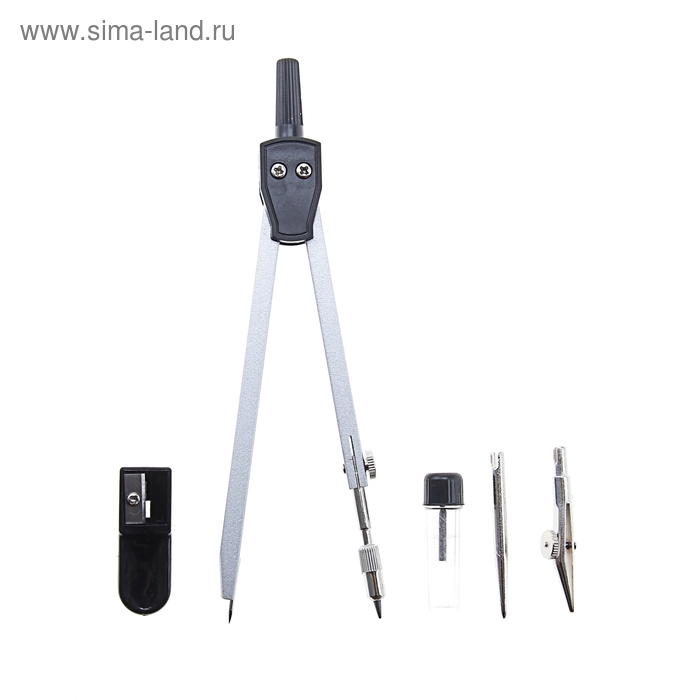 Готовальня, 6 предметов (циркуль, точилка, грифель, ластик, карандаш механический 0,5 мм, грифель НВ 0,5 мм) в пластиковом пенале