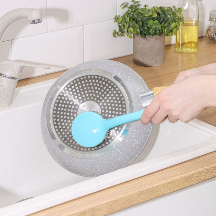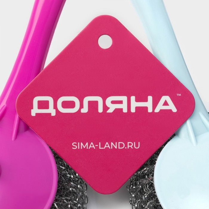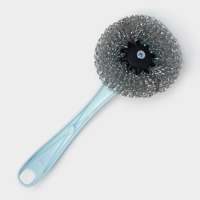 Губка для посуды Доляна «Бублик», с ручкой, металлическая, 15 г, цвет МИКС