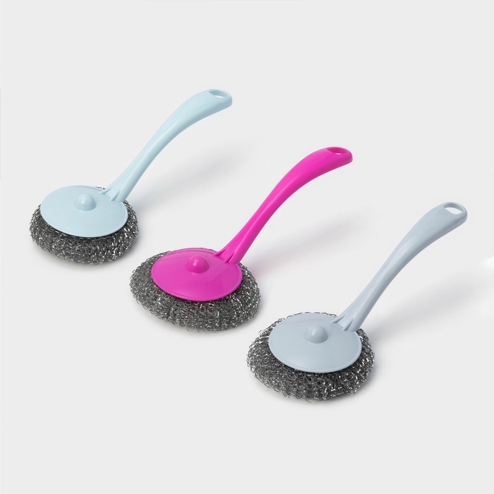 Губки для посуды Доляна, 3 шт., металлическая, 9×9×2 см