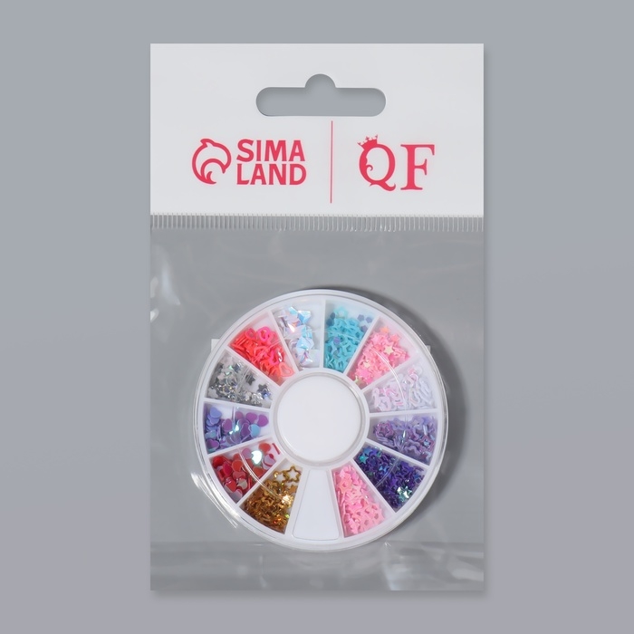 Пайетки для декора ногтей «Ассорти», 12 ячеек, разноцветные