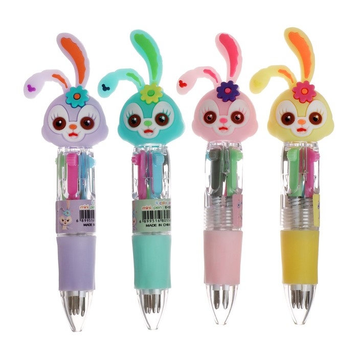 Ручка шариковая-прикол "Зайка" 4-цветная-мини, МИКС