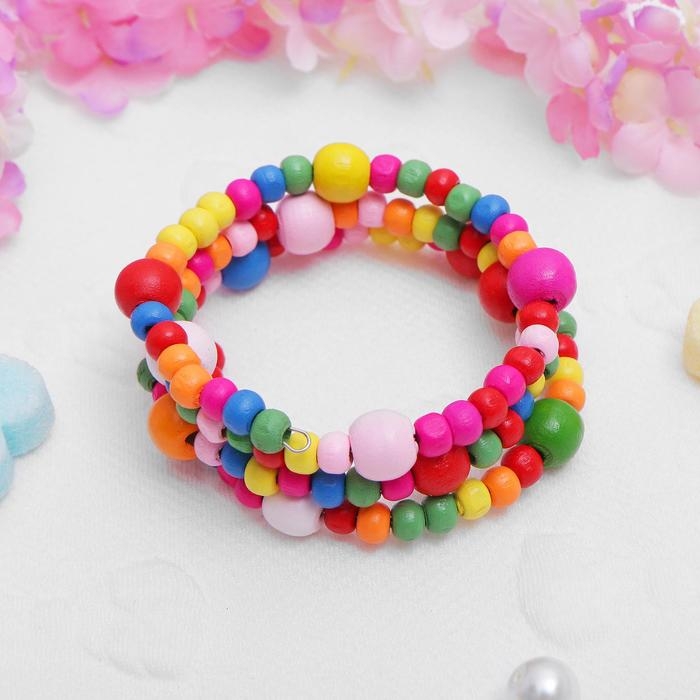 Браслет-пружинка детский «Выбражулька» бусинки, три ряда, цветной