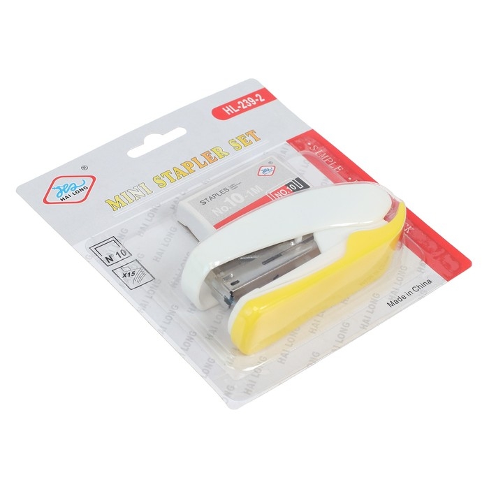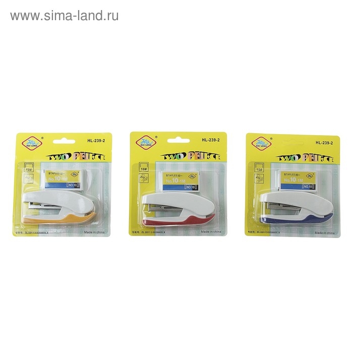 Степлер №10 до 15 листов со скобами, блистер, МИКС