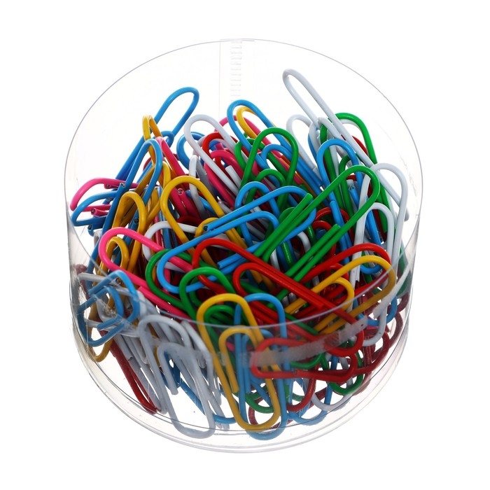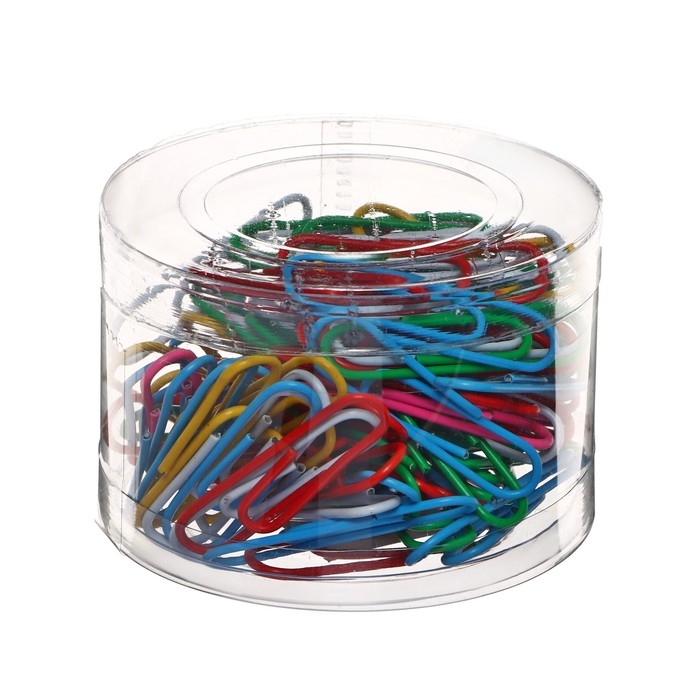 Скрепки 33 мм, цветные, в пластиковой коробке, 100 штук