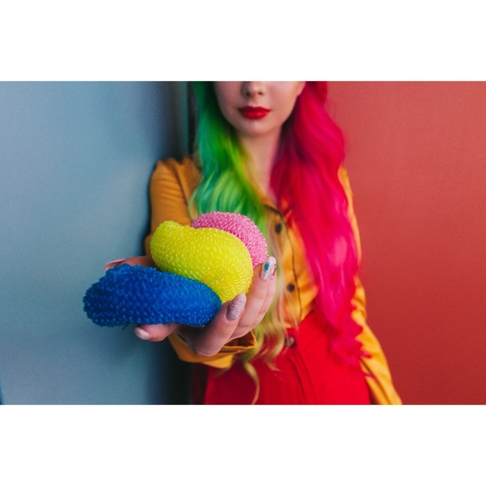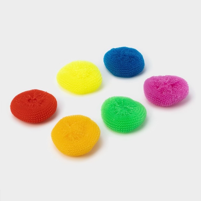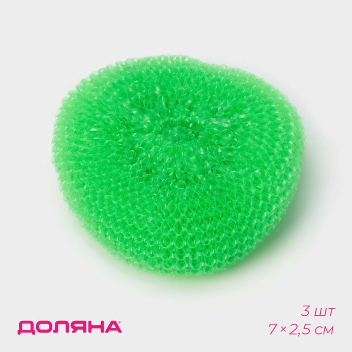 Губки для посуды Доляна «Бублик», 3 шт, пластик, 7×7×2,5 см, цвет МИКС
