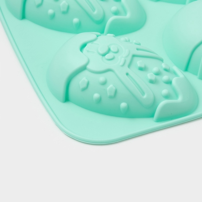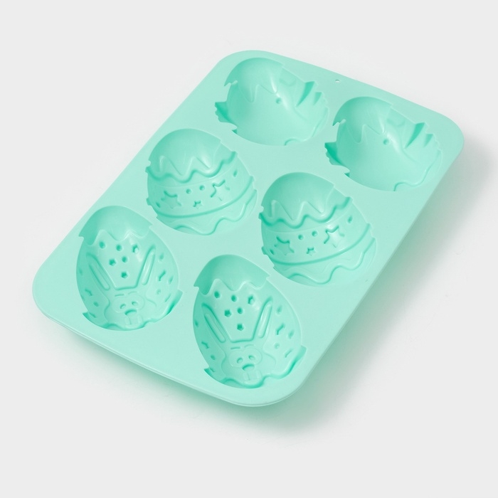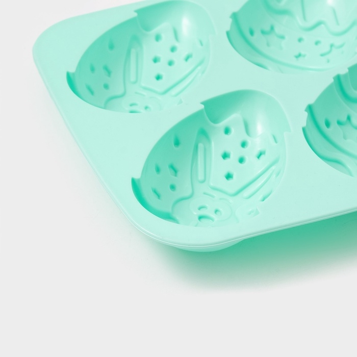 Форма для выпечки Доляна «Пасхальный кролик», силикон, 27×17 см, 6 ячеек, бирюзовая