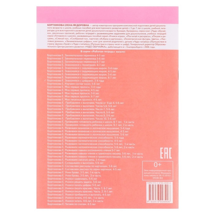 Рабочая тетрадь для детей 3-4 лет «Знакомимся с цифрами». Бортникова Е. Ф.