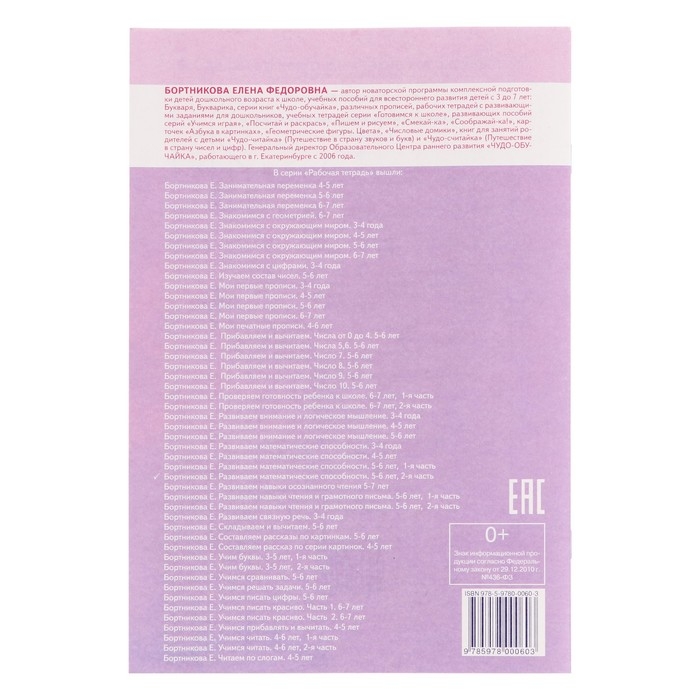 Рабочая тетрадь для детей 5-6 лет «Развиваем математические способности», часть 2, Бортникова Е.
