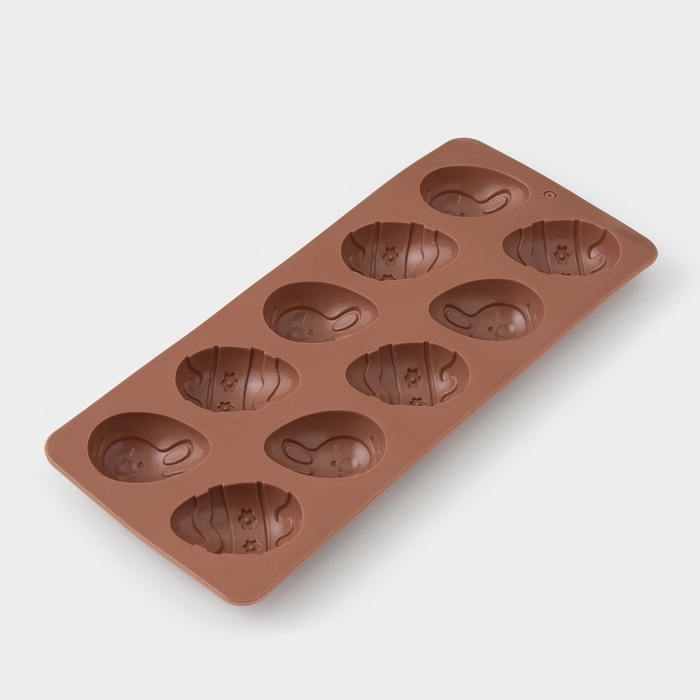 Форма для шоколада Доляна «Пасха», силикон, 23×10×1,5 см, 10 ячеек (4,2×3 см), коричневая