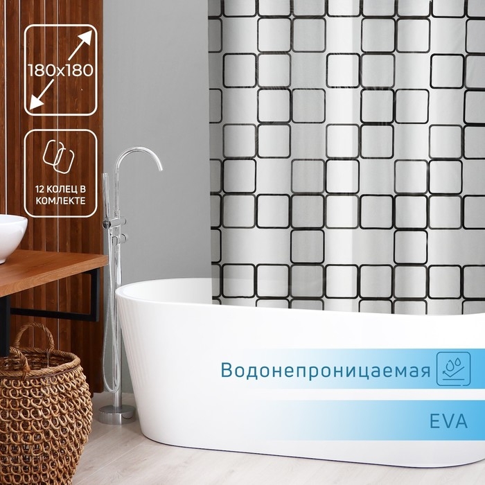 Штора для ванной Доляна «Графика», 180×180 см, PEVA