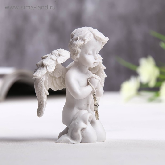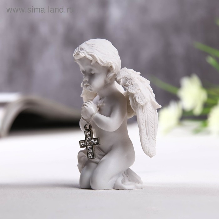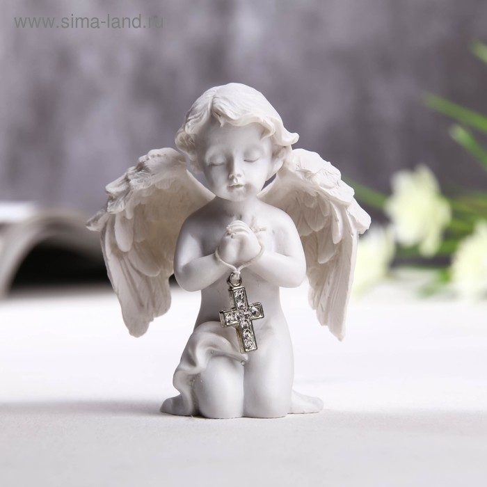 Сувенир полистоун "Ангелочек с крестиком из страз" 8х6,5х4 см