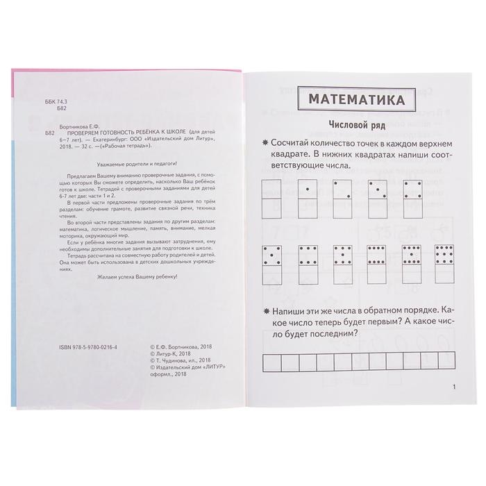Рабочая тетрадь «Проверяем готовность ребёнка к школе», для детей 6-7 лет, 2 часть, Бортникова Е.