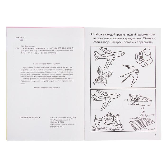 Рабочая тетрадь для детей 4-5 лет «Развиваем внимание и логическое мышление», Бортникова Е.