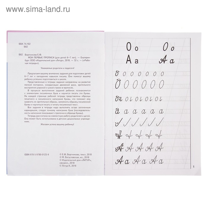Рабочая тетрадь для детей 6-7 лет «Мои первые прописи», Бортникова Е.