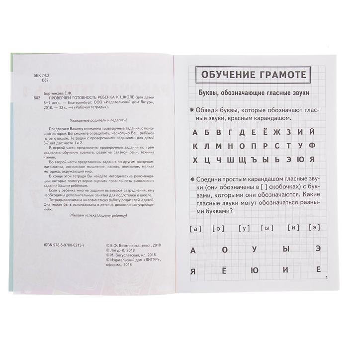 Рабочая тетрадь для детей 6-7 лет «Проверяем готовность ребёнка к школе», часть 1, Бортникова Е.