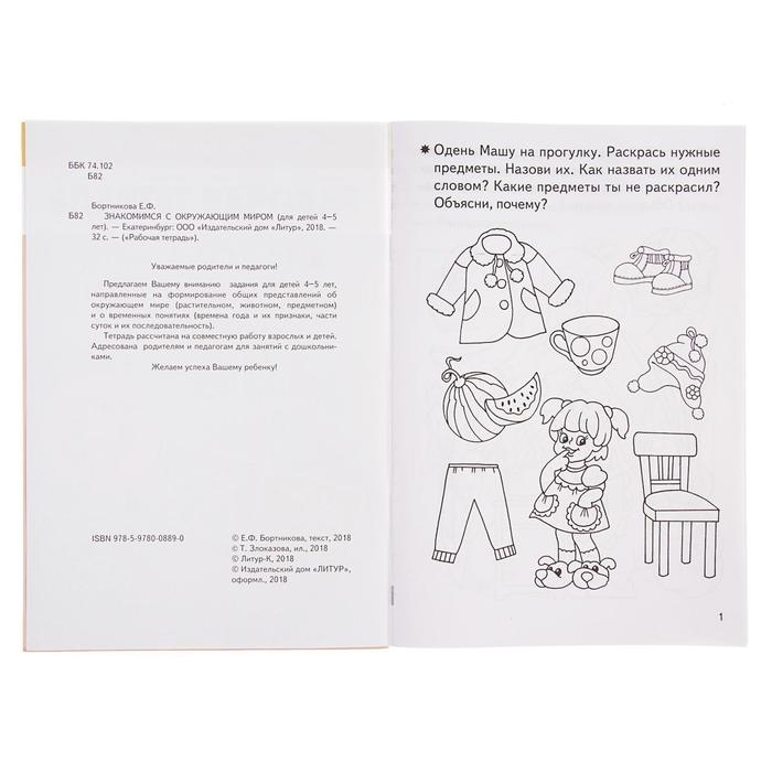 Рабочая тетрадь для детей 4-5 лет «Знакомство с окружающим миром», Бортникова Е.