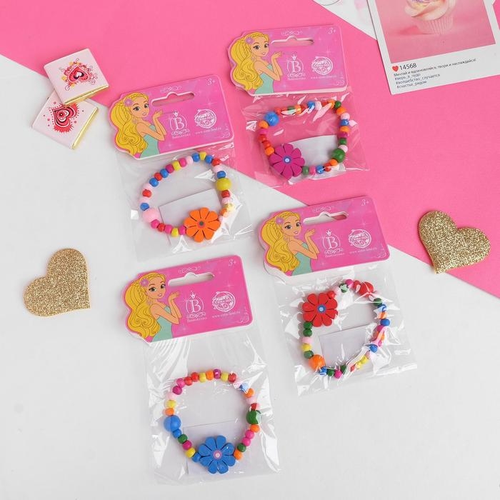 Браслет детский «Выбражулька» цветы с бусинами, цвет МИКС