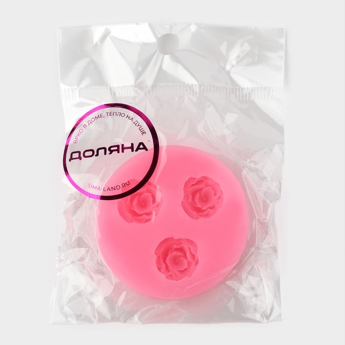 Молд Доляна «Три малых розы», силикон, 4,5 см, цвет розовый