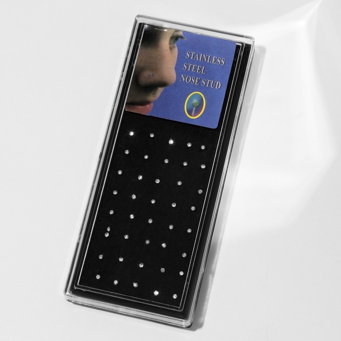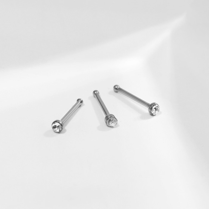 Пирсинг в нос прямой, набор 40 шт., L=10 мм, цвет белый в серебре