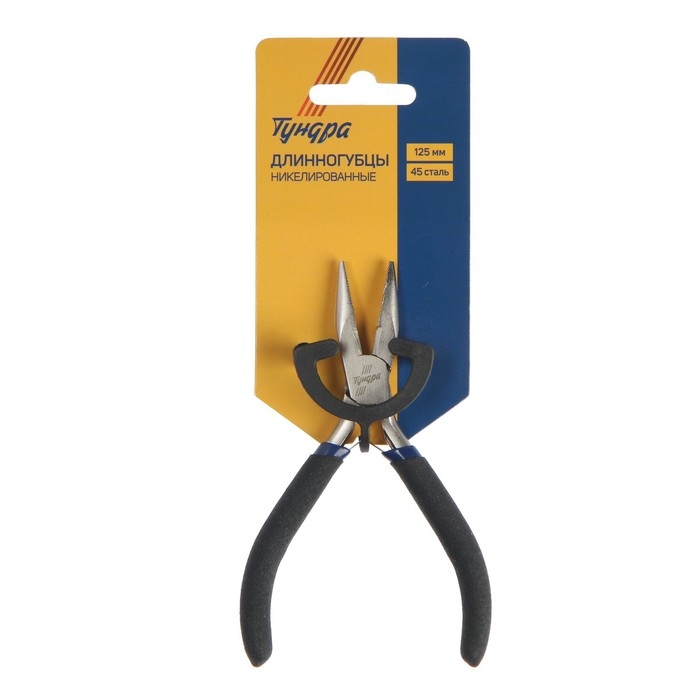 Длинногубцы ТУНДРА mini, никелированные, обрезиненные рукоятки, 125 мм