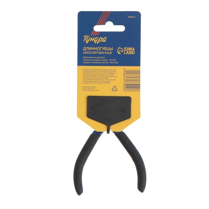 Длинногубцы ТУНДРА, никелированные, обрезиненные рукоятки, 160 мм